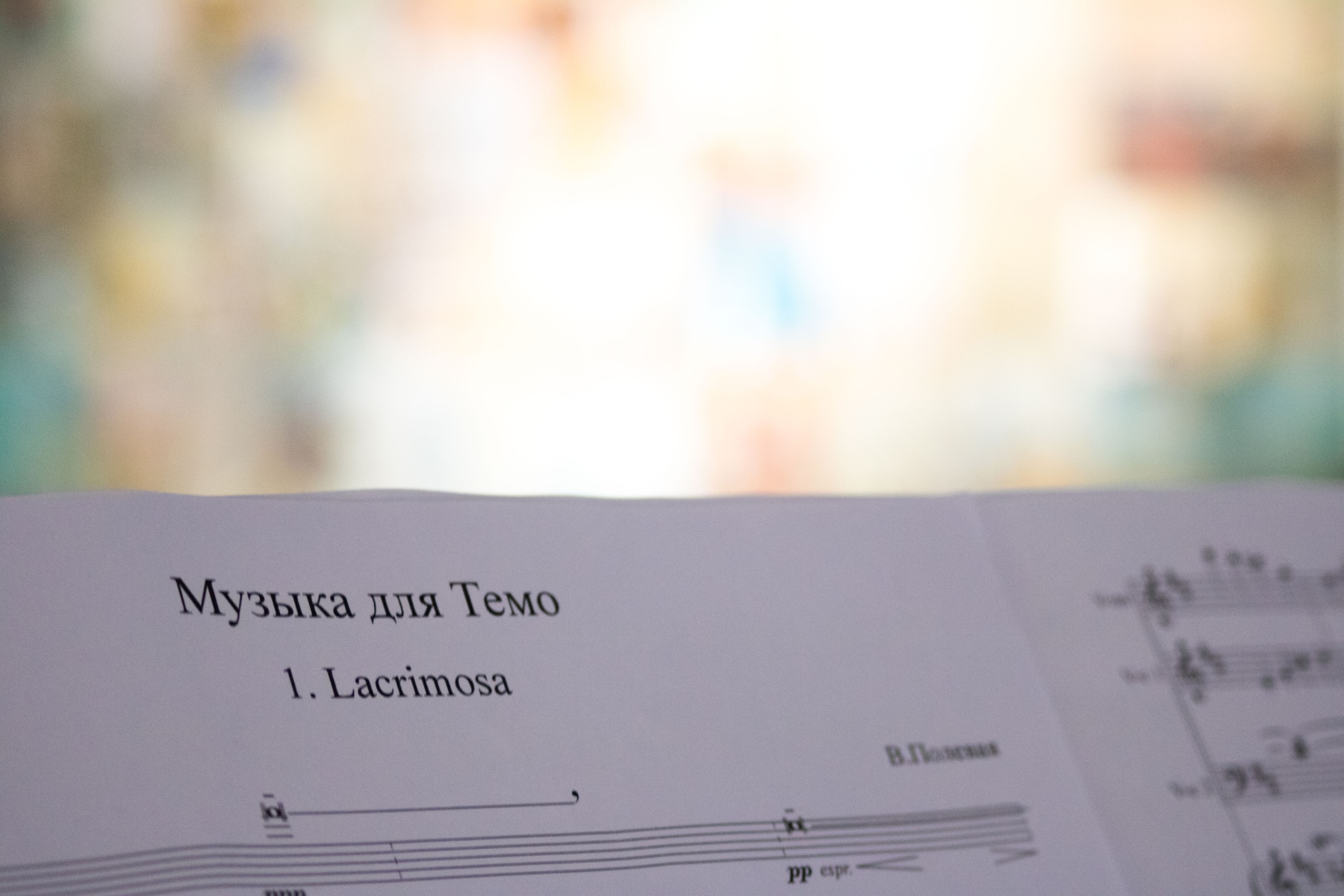 As part of the project, a renowned Ukrainian composer Victoria Poleva created "Music for Temo," a classical musical piece dedicated to the artist's memory. Its premiere was performed by the Virtuosi of Kyiv chamber orchestra at the exhibition opening. The piece was later presented in the National Philarmonic of Ukraine.