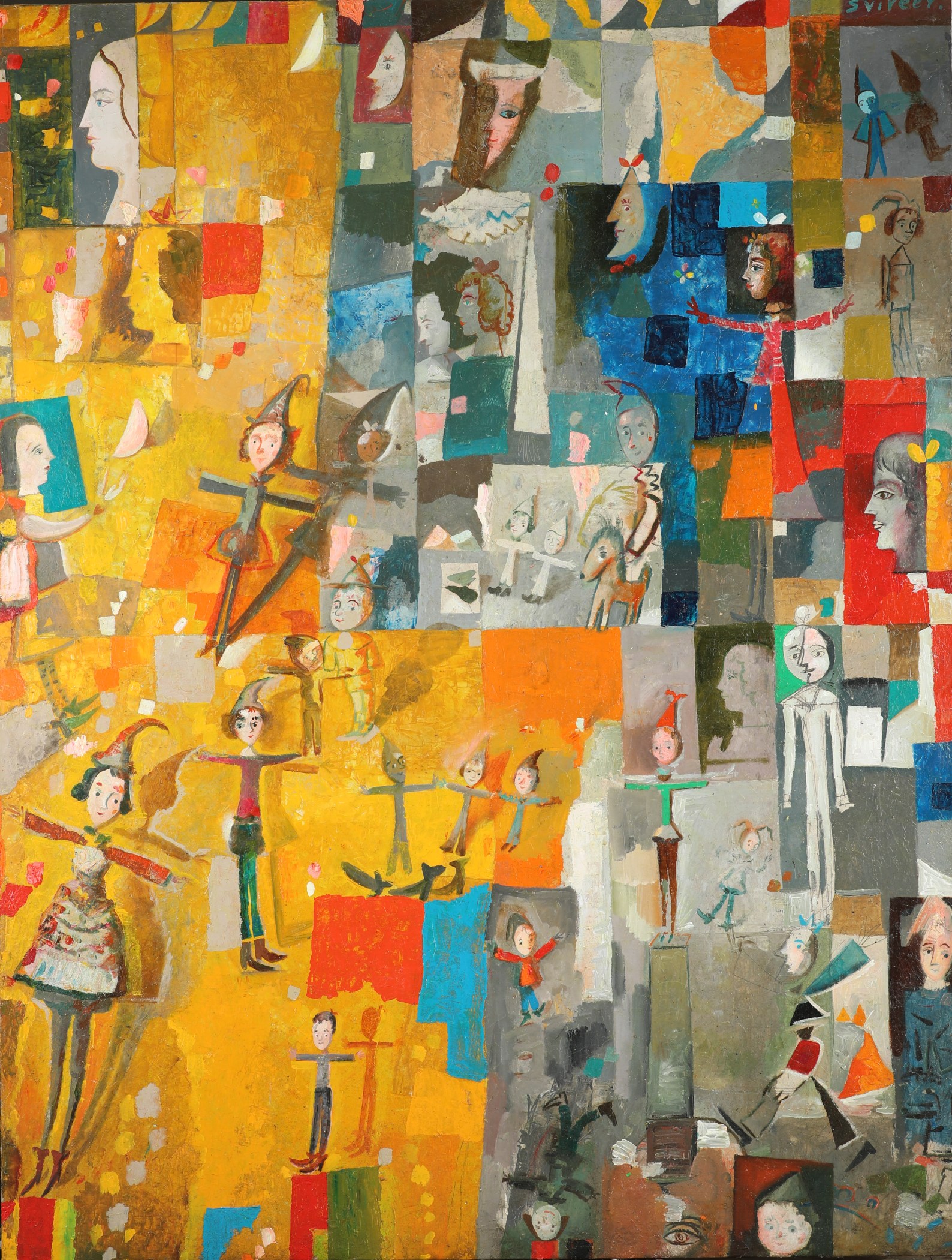 "Our museum's collection has been enriched with a special work – the first canvas by Georgian-Ukrainian artist Temo Svirely, Yellow Symphony, has entered our holdings. This is a landmark event that opens new horizons for researching and preserving the artist's legacy within the Ukrainian cultural context. Against a sun-drenched yellow background, grey and blue geometric elements ring out in contrast, drawing the eye to every detail. The artist masterfully combines abstraction with figuration, pairing his distinctive 'pseudo-naïve' style with a complex glazing technique. The figures in the painting seem to exist in a state of weightlessness. This sense of flight embodies the artist's reflections on freedom – creative, civic, and profoundly spiritual."